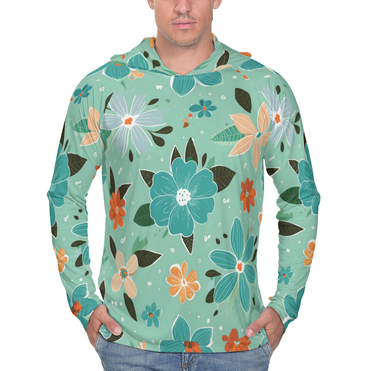 Floral Seamless Pattern Men's Sun Protection Long Sleeve Hoodie